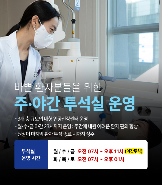 투석 치료 환자를 위한 진심 편안한 치료를 위해 최선을 다하는 동대문삼성내과